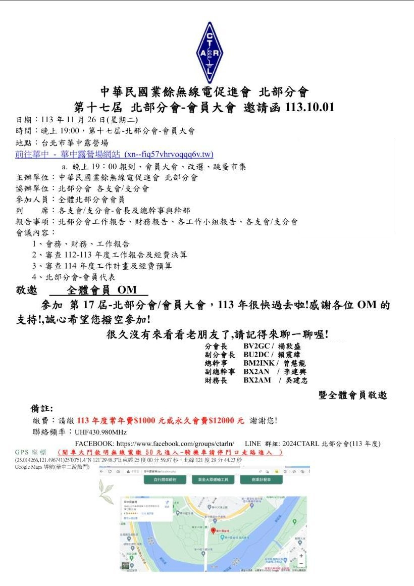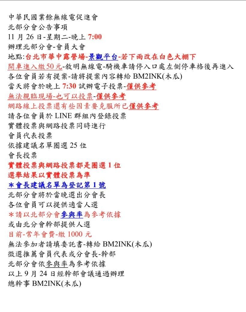 北部分會【113.11.26 選舉】公告&會員大會邀請函